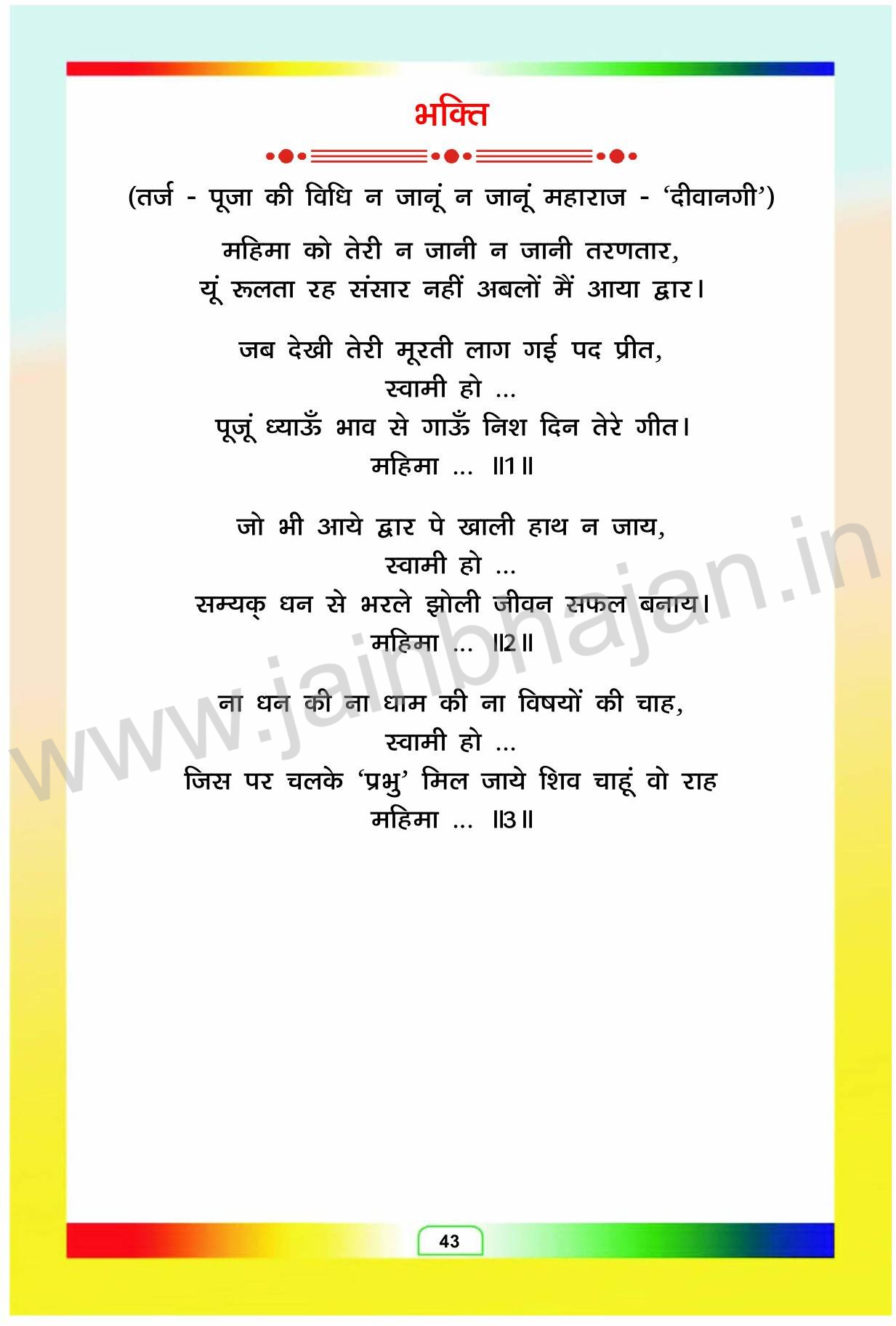 MAHIMA KO TERI NA JANI