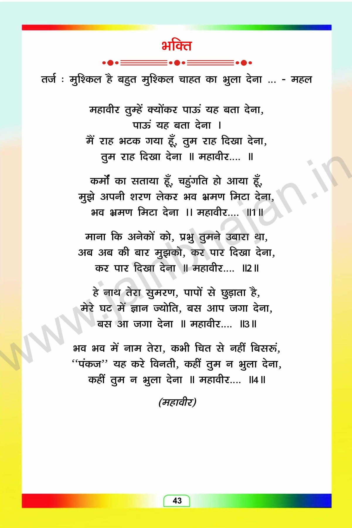 MAHAVIR TERA DARASH MANN