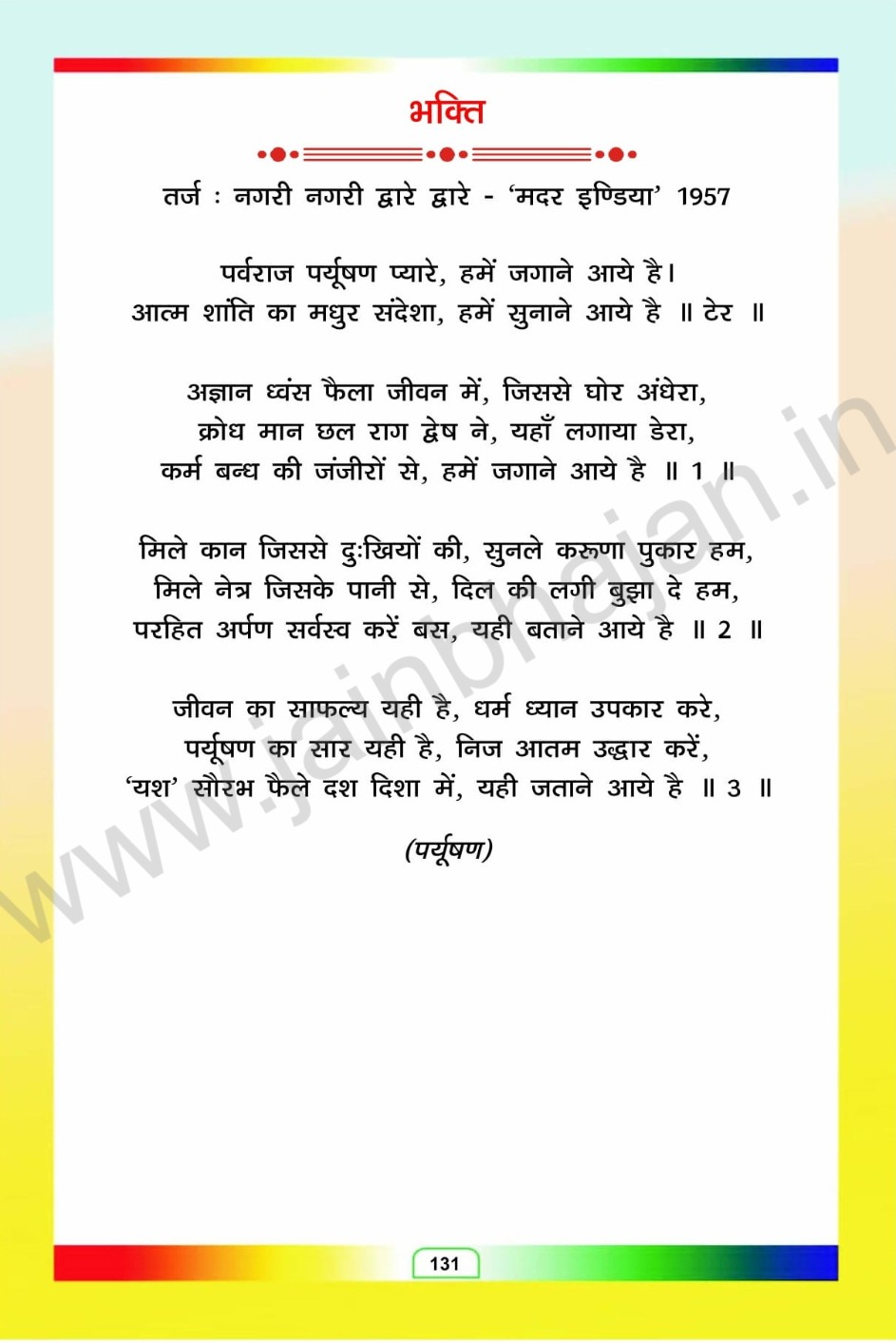 YE PARV PARYUSHAN AAYA SAB JAG ME
